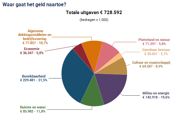 Voor 2026 bedragen de begrote inkomsten in totaal € 729,1 miljoen en de begrote uitgaven € 728,6 miljoen. Per saldo betekent dit een begrotingsruimte van € 0,5 miljoen. |